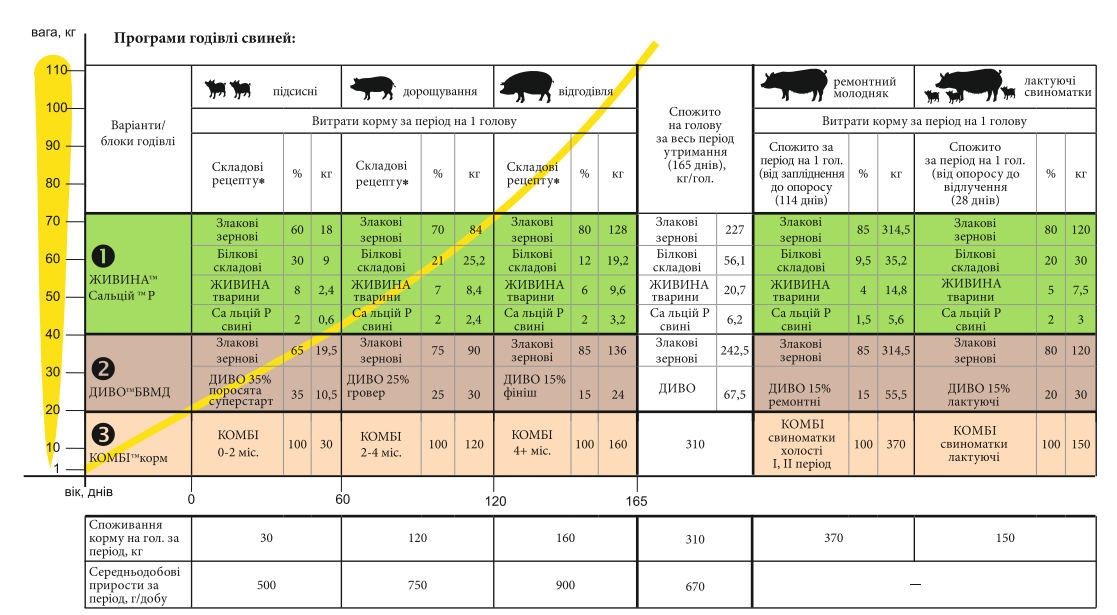 Показники ефективності розраховано на основі виробничої практики свиногосподарств підприємств-партнерів, фізіологічного двору ВІТА ПФ, Інституту кормів і сільського господарства НААНУ та досягнуто за умов правильного ведення свинарства: